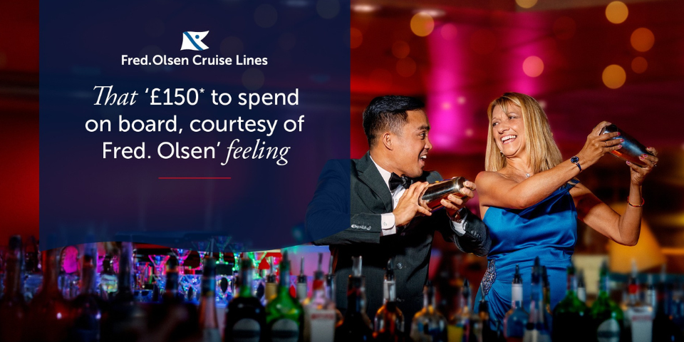 But if you really want to know what a Fred. Olsen cruise feels like there’s only one way to find out. And if you book now, you'll receive up to £150 onboard spend. Shaken or stirred, it's on Fred. Olsen.